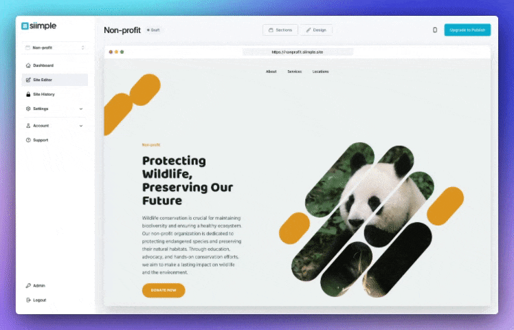 With Siimple, all of that happens automatically in the background. Your site, templates, and design framework are always up to date, patched, and backed up without you lifting a finger.