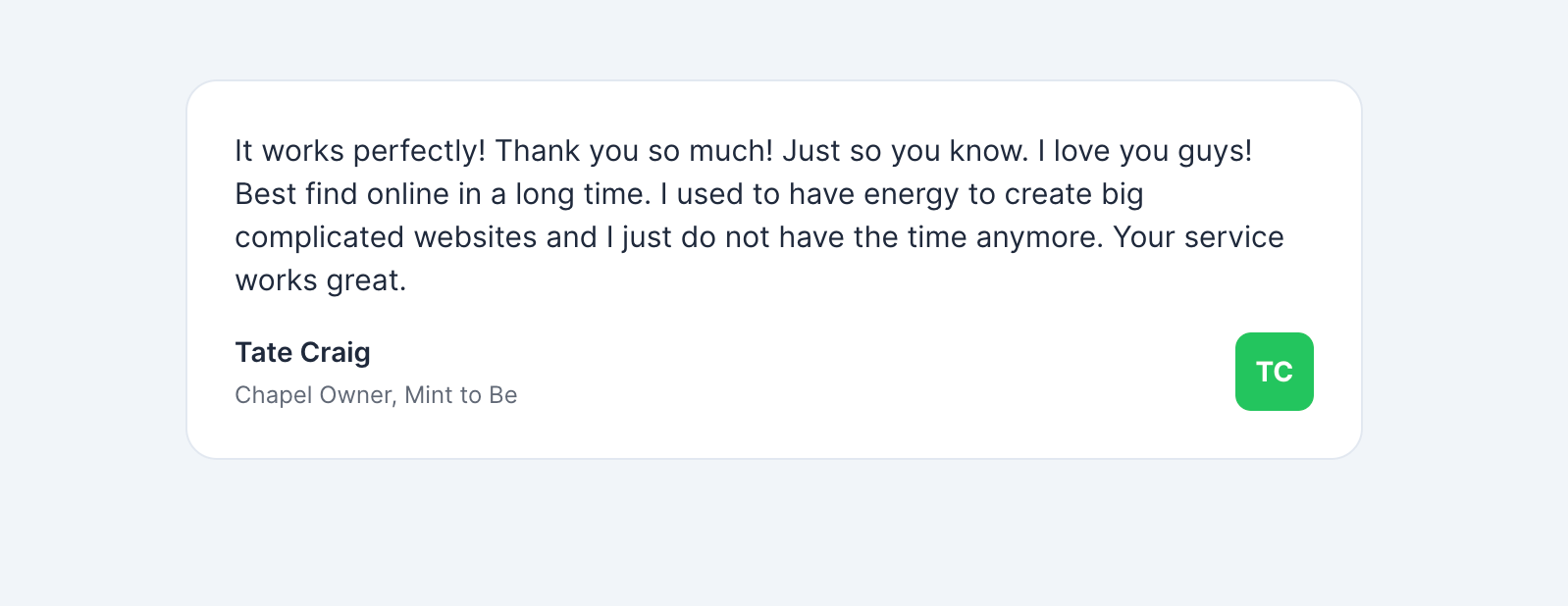 Making tech simple and ethical isn't simple. But that's been 100% of our focus from the start. Small businesses don’t need another complicated website builder that overcharges them, tricks them with upsells and offers endless customization options and confusing tech. They need something that lets them actually do more and think less while still getting results for their business at a price they can afford to pay.